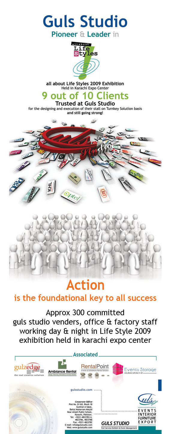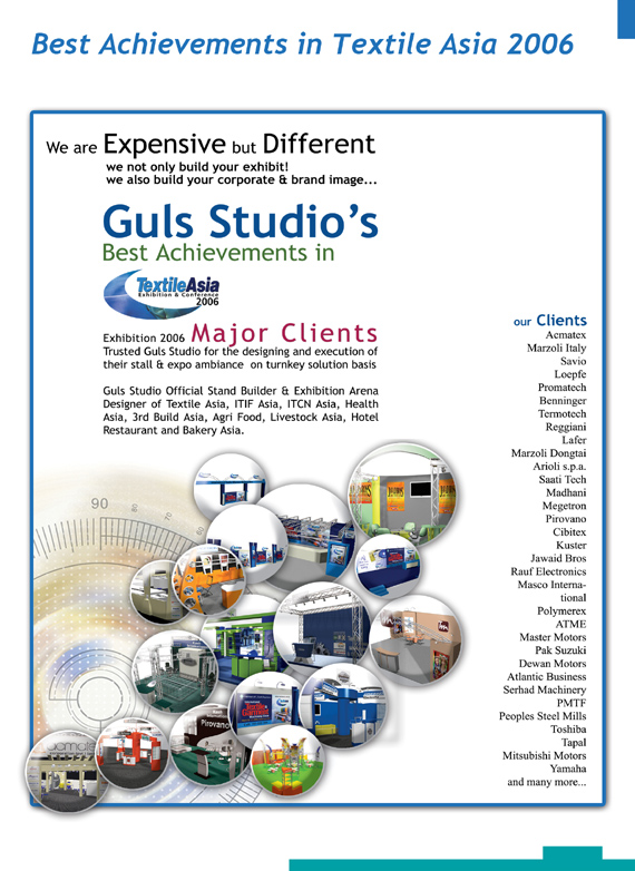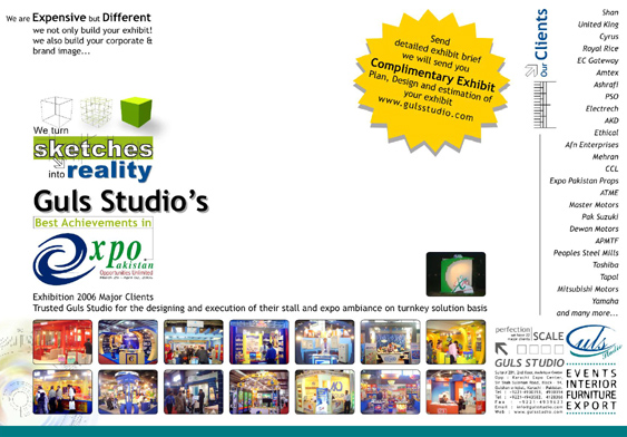Guls Studio Pakistan mega Exhibition Official Ambiance Design from 2001 to 2014: Guls Studio has been Official Ambiance Designer from 2001 to 2014 Every 9 out of 10 Exhibitor’s Official Ambiance Designs belongs to Guls Studio.